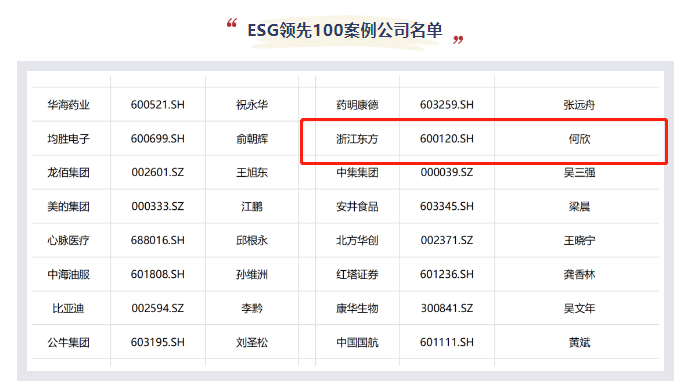 本屆論壇旨在推動(dòng)中國(guó)可持續(xù)投融資發(fā)展,進(jìn)一步探索ESG發(fā)展重要路徑,推動(dòng)金融與實(shí)體經(jīng)濟(jì)對(duì)接。論壇大會(huì)組委會(huì)在國(guó)內(nèi)ESG領(lǐng)域首次組織邀請(qǐng)政府監(jiān)管機(jī)構(gòu)、交易所、投資基等代表及證券分析師、投資專家、財(cái)經(jīng)記者等組成專家委員會(huì),建立完善的評(píng)審體系,推選出中國(guó)上市公司ESG領(lǐng)先100案例與中國(guó)上市公司ESG年度人物。浙江東方成功入選ESG領(lǐng)先100案例,未來(lái)將獲得國(guó)內(nèi)外ESG投資者更多的關(guān)注和青睞。