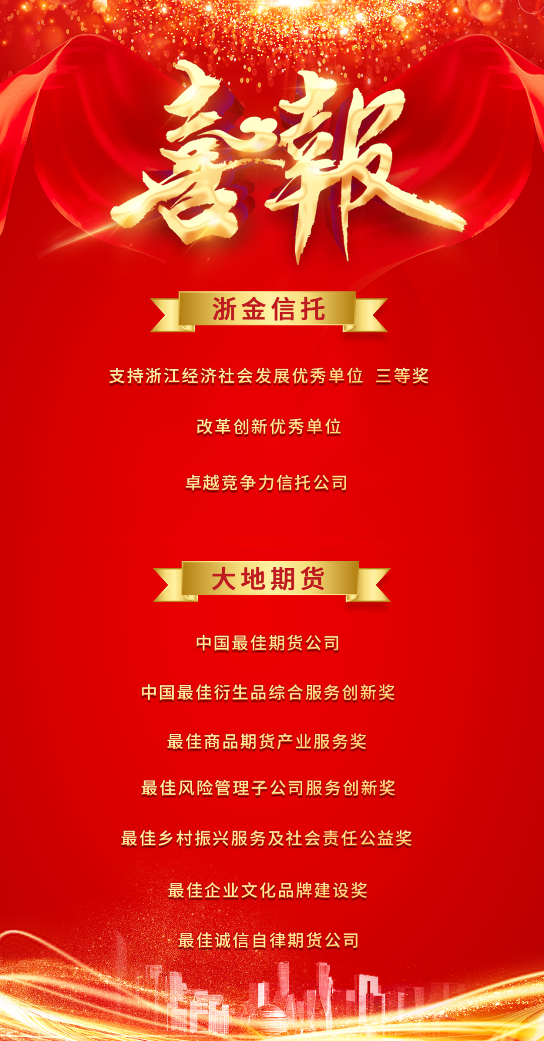日前,浙江東方旗下浙金信托、大地期貨憑借在專業(yè)領域和社會責任等方面的積極成效,榮獲省內、業(yè)內多項重量級的獎項。
